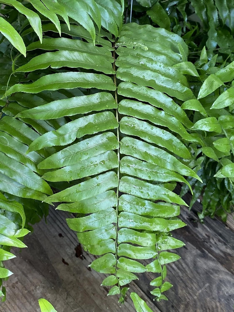 - A tropical, evergreen fern, it's also called "giant sword fern" because its sword-shaped fronds can be 4 feet long, with the entire plant approaching a width of 6 feet.