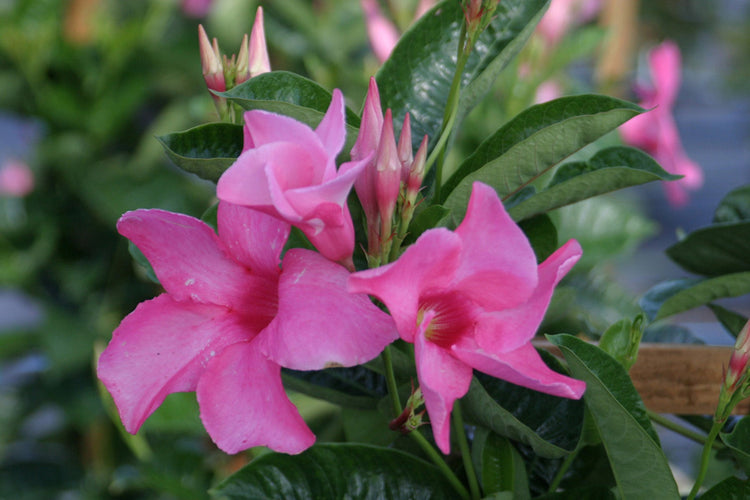 - Grown, packaged and shipped exclusively by Wekiva Foliage. Mandevilla, also known as rocktrumpet, is a genus of flowering vines that grow in tropical and subtropical climates. The five-petal flowers are often showy and fragrant, typically coming in shades of pink, red, and white, occasionally with yellow throats.