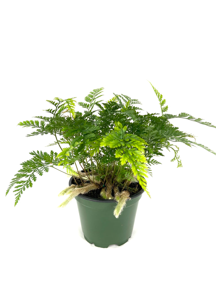 - Packaged and shipped exclusively by Wekiva Foliage. The fejeensis is easily recognisable as a fern because of it's fronds (grow upright) that display gauzy or lace like leaflets. The small leaves are attached to kind of wiry stalks that grow from the visible rhizomes. These furry and yellowish brown rhizomes creep over the pot; they are main feature of this species.