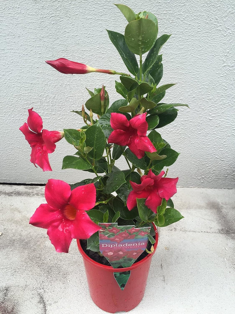 Red Dipladenia Plant - Live Plants in 6 Inch Pots - Beautiful Flowering Easy Care Vine - Tropical Indoor Outdoor Plants from Florida