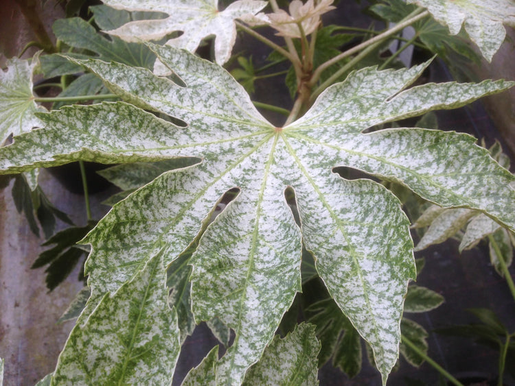 Transform your living space with the Speckled Spider Web – a resilient, elegant companion that brings year-round beauty and tranquility. Order now and experience the joy of nurturing this enchanting evergreen shrub! Fatsia spider, also known as speckled Japanese aralia, is a flowering plant native to southern Japan and Korea. It is a broadleaf evergreen shrub or small tree with large, glossy, deeply green leaves. The leaves can grow to be about a foot wide and grow on long stems that reach up and outward. Fatsia spider produces small, white flowers in late fall, followed by decorative black fruits. It is a popular shrub in the Southeast due to its adaptability, tropical appearance, and good cold tolerance.