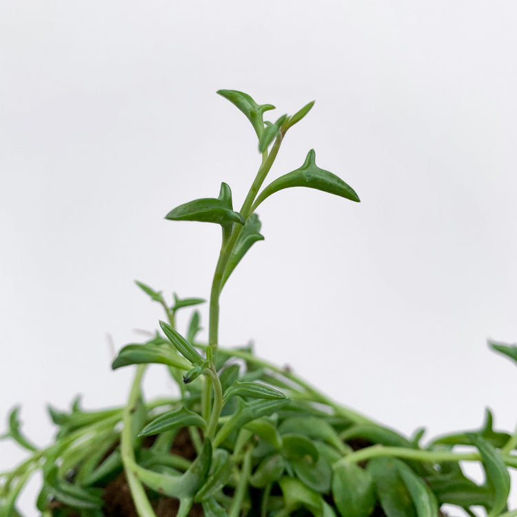 • String of dolphins are characterized by their iconic dolphin-shaped leaves and long hanging tendrils. While they can bloom, the delicate blooms are relatively inconspicuous and these plants are grown for their interesting foliage rather than their flowers.