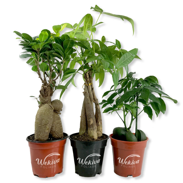 Ultimate Houseplant Trio - Money Tree Braid, Lucky Bean Plant, and Ginseng Ficus - A Captivating Blend of Houseplants and Bonsai Artistry