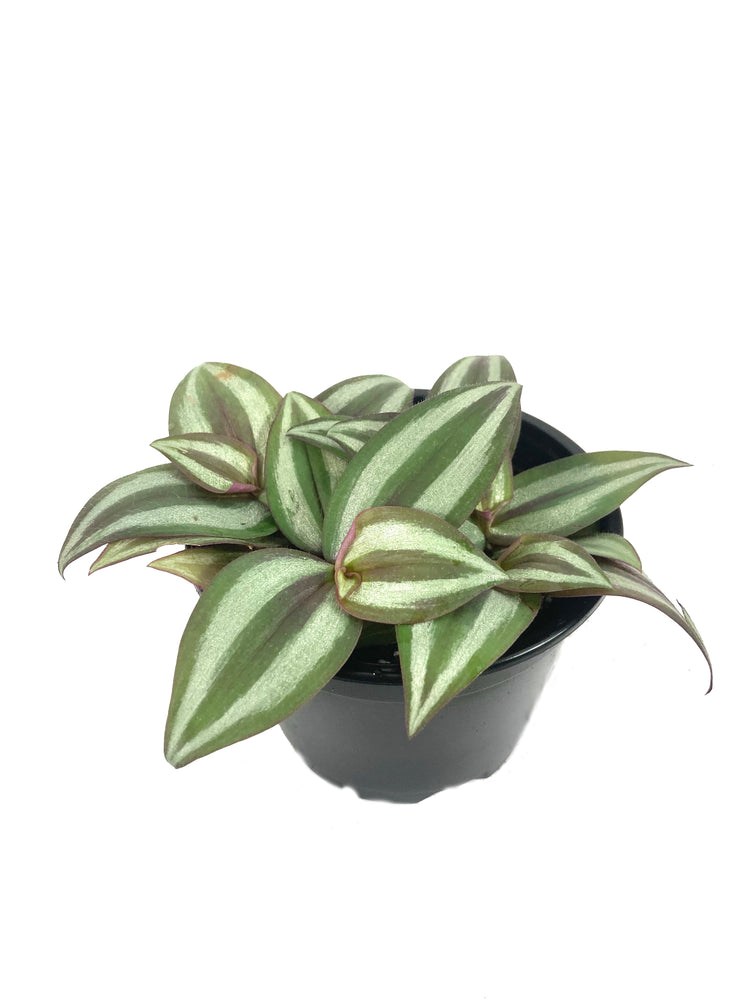- Grown, packaged and shipped exclusively by Wekiva Foliage. Wandering jew plants have green, heart-shaped leaves with purple stripes and a silvery sheen to them. Depending on the variety, the leaves can be solid or variegated. Blooms are small with three petals and can be violet or white.