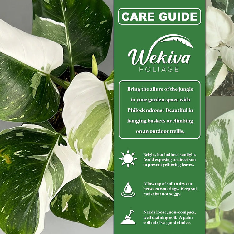 The White Wizard Philodendron is a stunning, rare tropical plant that’s perfect for plant enthusiasts and beginners alike. With its glossy green leaves streaked with striking white variegation, this houseplant adds a magical touch to any space. Easy to care for and highly sought after, it’s a must-have for your plant collection! Included with your White Wizard is our specially formulated Premium Houseplant Soil, designed to give your plant the ideal foundation for healthy growth. This combo is perfect for plant lovers who want a seamless experience with their new White Wizard. Whether you're a seasoned collector or just starting your plant journey, you'll have everything you need to help your new plant thrive.