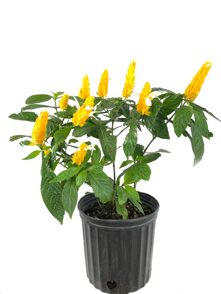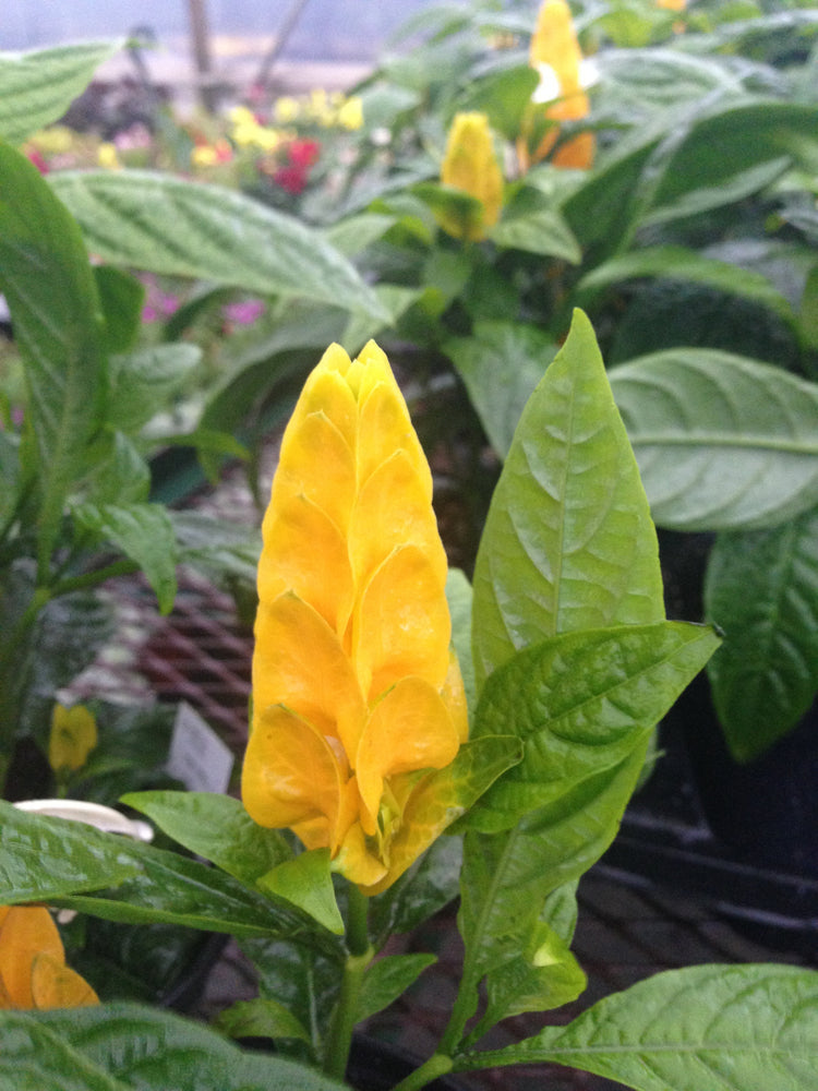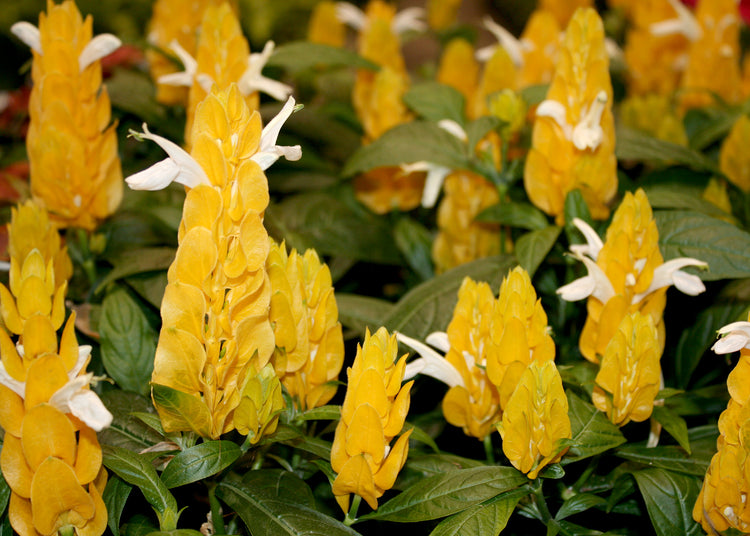 - Each flower spike somewhat resembles a large shrimp. Blooms in summer. Synonymous with Beloperone guttata.