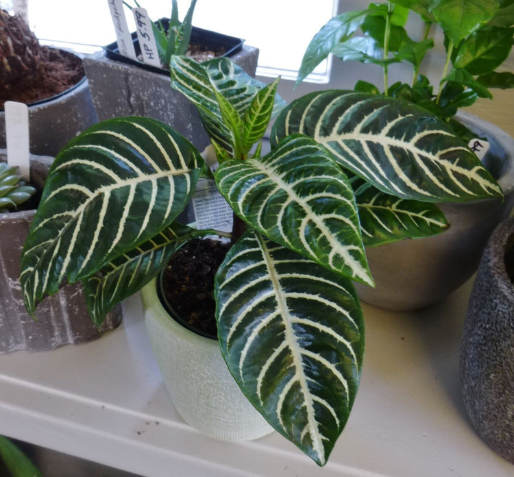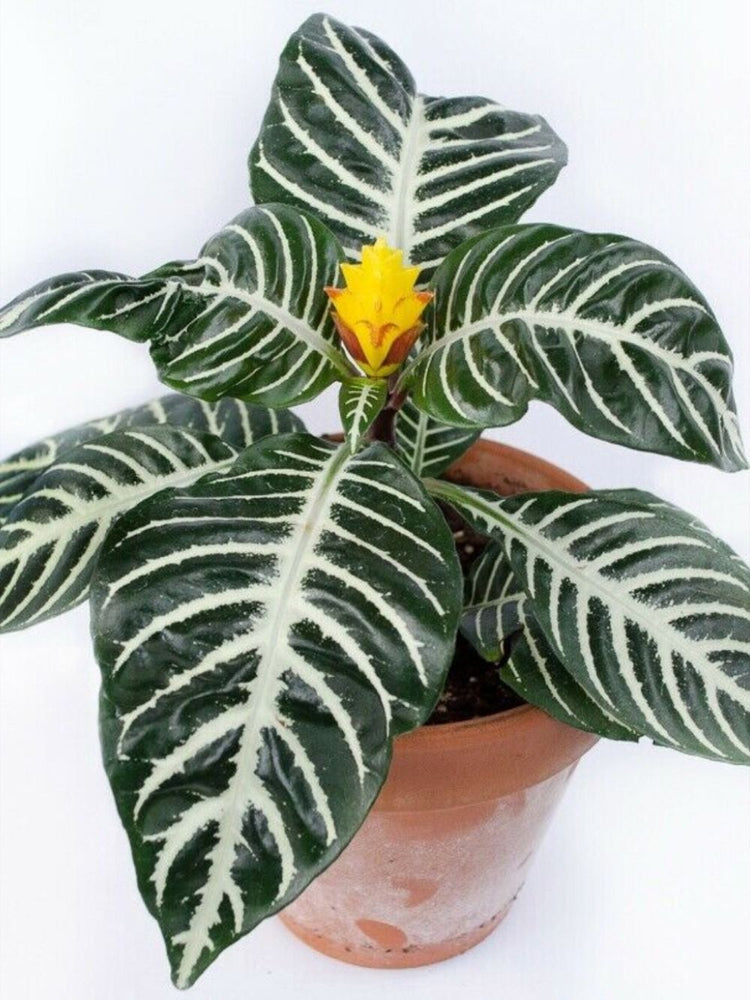 • Grown, packaged and shipped exclusively by Wekiva Foliage. This zebra houseplant is known for its large shiny leaves and dark green foliage deeply veined in white or yellow, reminiscent of zebra stripes, hence the common name. Their brightly colored flowers and bracts make for a prized display.