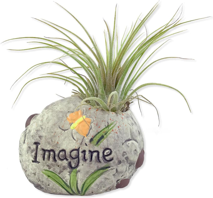 Air Plant Grace: In the statue's hands, a smaller air plant rests gracefully, exuding a touch of elegance and uniqueness. This ethereal plant requires minimal care and adds an airy charm to the overall composition. With its ability to absorb nutrients from the air, the air plant symbolizes adaptability and resilience, reminding us to embrace change and go with the flow.