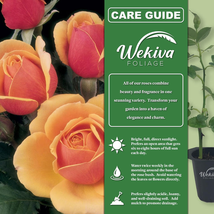 The About Face Rose Bush is a captivating floribunda variety celebrated for its striking bicolor blooms and vigorous growth. This rose produces large, high-centered flowers with a unique color contrast: deep golden-orange petals on the inside and a rich bronzy-red hue on the reverse. As the blooms unfurl, the two-tone effect creates a mesmerizing display that stands out in any landscape. The plant’s upright, bushy growth habit allows it to reach a mature height of 4 to 5 feet, making it an excellent choice for garden borders, mixed flower beds, or as a focal point in a decorative container. With an extended bloom period from late spring through fall, the About Face Rose continuously produces clusters of blossoms, ensuring months of vibrant color and visual appeal.