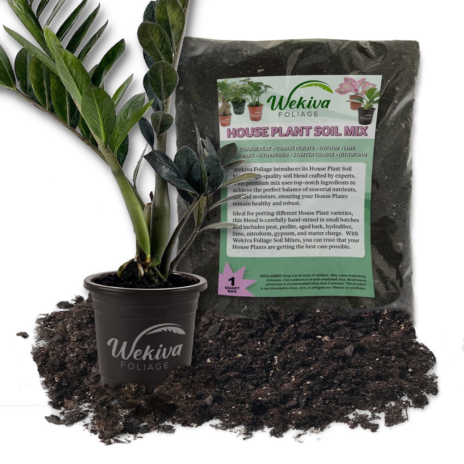 Black Raven ZZ Plant and Soil Mix Combo - Live Plant in a 4 Inch Pot with 1 Quart Houseplant Soil Mix - Zamioculcas Zamiifolia with Custom Soil Blend