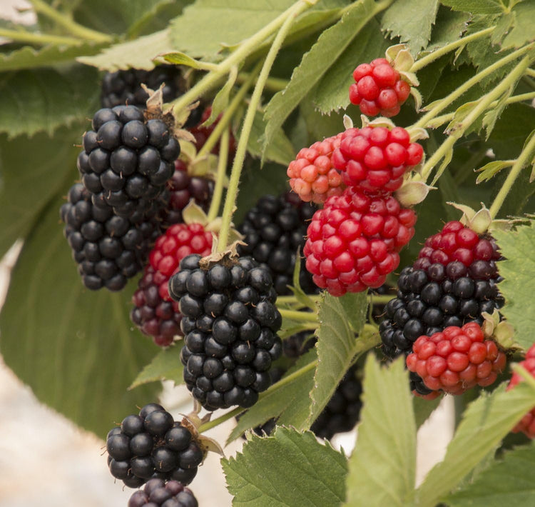 Blackberry plants are fruiting shrubs. They belong to the genus Rubus in the rose family Rosaceae. Blackberry bushes produce fruits called blackberries. Much like their close cousin the raspberry, blackberries contain high levels of antioxidants, including vitamin C, vitamin K, potassium, and dietary fiber. They contain very little overall fat and zero saturated fat. They contain a small amount of protein, but most of their calories come in the form of carbohydrates. As members of the Rosaceae family, the cultivation of blackberries resembles that of rose bushes. Fortunately, blackberries are closer to wild roses in their ease of care than they are to a hybrid tea rose. Blackberries will tolerate many growing conditions. Sites with full sun are best for productive blackberry bushes. Some afternoon shade is tolerated, especially in areas with hot summers. Careful site selection will ensure a long life for your blackberries, which usually live for about a decade with proper care. The ideal soil is slightly acidic with good drainage; these plants do not do well in clay soil. An elevated site or raised beds will not only help drainage but will also prevent late spring frosts from damaging flower buds. Blackberries need moderate amounts of water, around 1 inch per week provided either by rainfall or from ground-level irrigation. Blackberries do not fare well in wet soils.