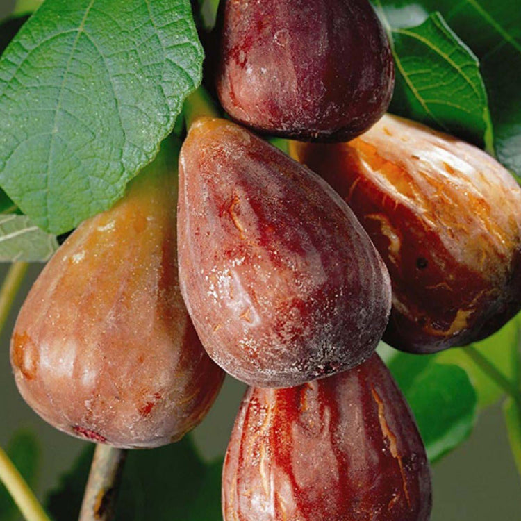These iconic plants produce delicious fruit with flavors best experienced ripe from the tree. Unlike other fruits, figs ripen entirely on the branch, so planting your own allows you to harvest the freshest fruit. The common fig tree, thriving in warm climates, does not require pollination to bear new fruit. Figs are self-fruitful, so you need only one plant to produce fruit. Mature fig trees can be 10 to 30 feet tall. If you have more room, plant several. Choose early, mid and late-fruiting selections to extend your harvest from summer into early fall. Some figs will produce bonus fruit early in the season, called a "breba" crop and the main crop. Figs can vary in size, shape, flavor, texture, and harvest time and can be black, green, brown, violet, yellow, or purple. Full sun is essential for an abundant harvest and the sweetest fruit. It's ideal for planting fig trees in an area that receives six to eight hours of direct, daily sunlight. Less sunlight will prevent trees from producing as many figs compared to those planted with adequate light. Fig trees grow in various soil conditions, but slightly acidic and well-drained soils are best. Soil with rich, organic matter helps supplement growth. Regular potting mixes work well for fig trees as long as it retains moisture and is well-aerated. These plants grow well near coastal regions but also tolerate loamy, clay, or sandy conditions. When fruit is developing, it's important to water regularly. Check daily, and pick just as the fruit ripens. During the first year, as plants become established, water regularly and mulch. Once established, figs can be very drought tolerant.