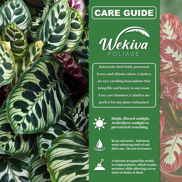 - Distinctive Appearance: The Calathea Dottie has dark green leaves with bold pink veins that create a striking contrast against its purple background. The glossy texture of the leaves adds an elegant touch to any space.