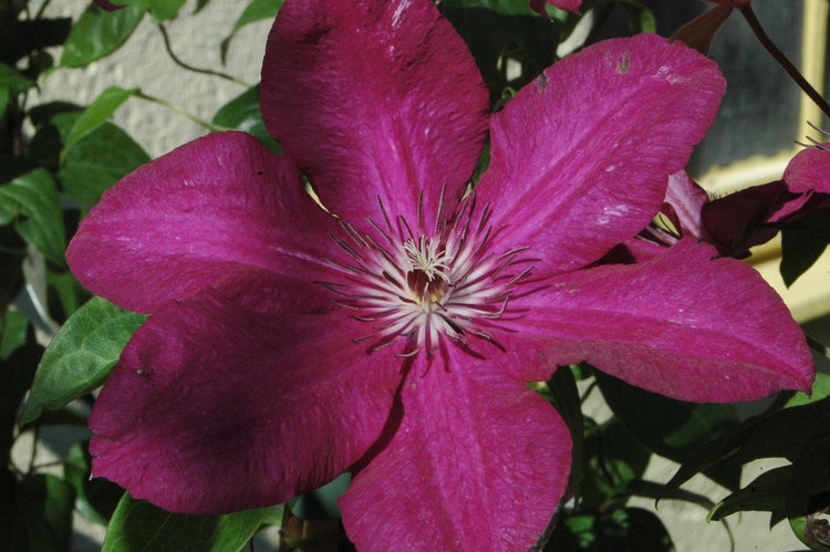 - Grown, packaged and shipped exclusively by Wekiva Foliage. This perennial vine is free flowering with 6- to 8-inch, rich and luminous, crimson flowers with a central cluster of 6 to 8 dark anthers, usually overlapping at the base. Young flowers bloom crisp and star-shaped, but as they age, they grow big and billowy. Summer flowering, it blooms June to July and again in September, but more established plants tend to flower almost continuously from early summer to early autumn.