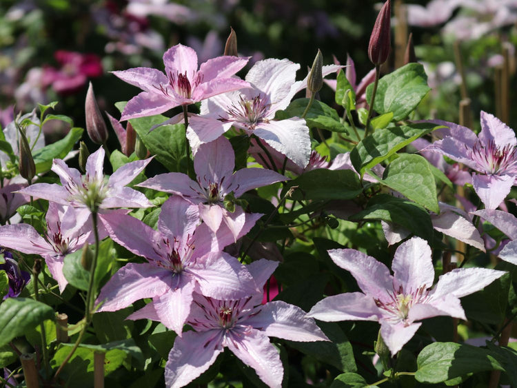 - Grow in fertile, medium moisture, well-drained soils in full sun to part shade. Vining hybrids are best sited in locations where the flowering parts of the vine are in sun to part shade but the roots are shaded. Some light afternoon shade is usually beneficial in hot and humid summer climates such as the St. Louis area. Clematis vines need a trellis or other support on which to grow.