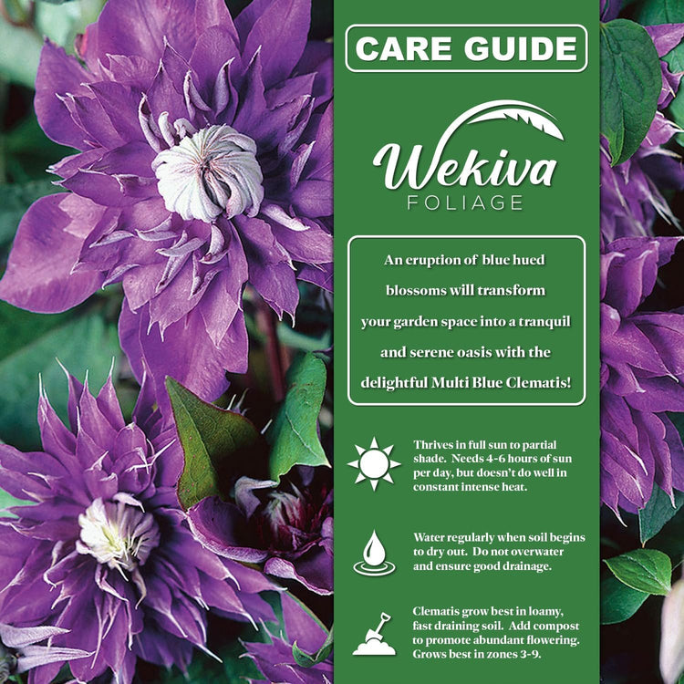 Clematis Multi Blue - Live Starter Plants in 2 Inch Growers Pots - Starter Plants Ready for The Garden - Rare Clematis for Collectors