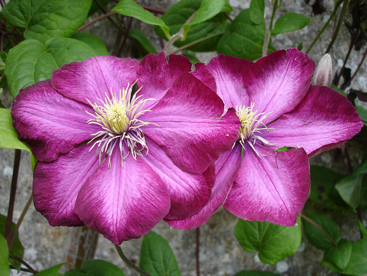 - Grown, packaged and shipped exclusively by Wekiva Foliage. 'Ville de Lyon' is a large-flowering, hybrid clematis that features profuse, showy, 4-6" diameter, carmine red flowers with golden stamens. Bloom on this cultivar comes primarily from the current year's growth, and covers the vine for most of the summer.