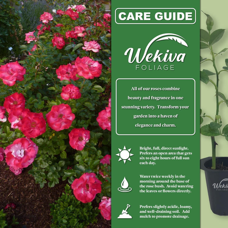 - The Dick Clarke Rose begins as creamy white with pink edges before deepening into a bold red as the flower matures. This ever-changing color display makes it a standout in any garden setting, offering continuous visual interest throughout the season.