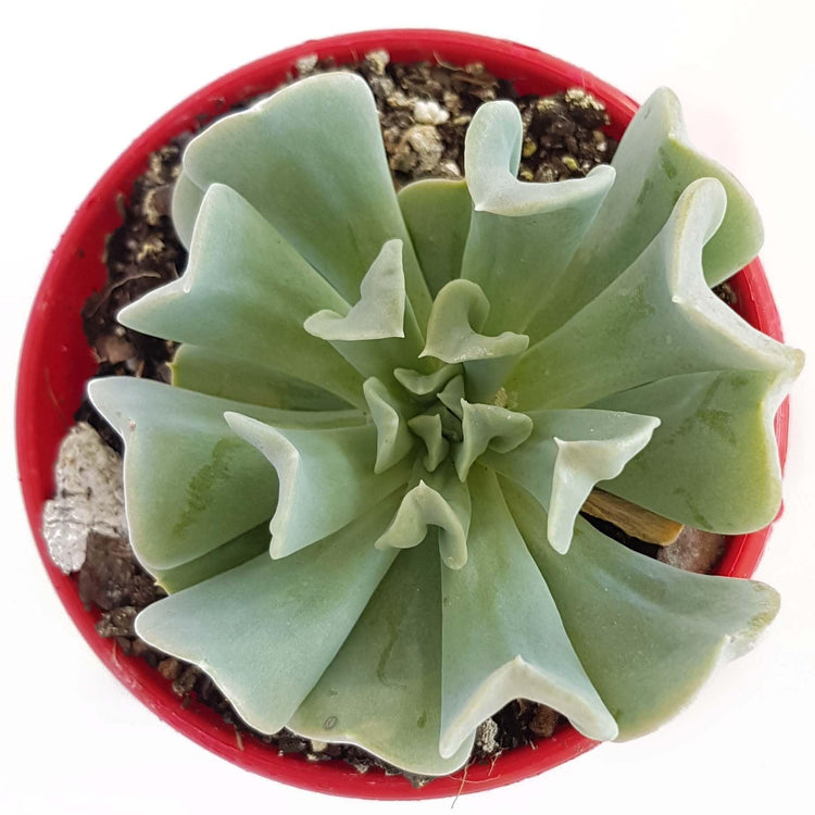 The Echeveria Topsy Turvy, also known as Echeveria Runyonii, is a captivating succulent that brings a touch of natural elegance to any space. This striking plant features rosettes of thick, blue-green leaves that curve inwards, creating a distinctive wavy appearance that adds visual interest to both indoor and outdoor gardens. Perfect for succulent enthusiasts and beginners alike, the Topsy Turvy is low-maintenance and thrives in various environments, making it a versatile addition to your plant collection. Its unique shape and compact growth make it ideal for decorative pots, rock gardens, or as a focal point in succulent arrangements. The Echeveria Topsy Turvy also produces charming orange-yellow flowers on tall stalks during the growing season, further enhancing its ornamental value. Whether you're looking to add a statement piece to your garden or a unique touch to your home decor, the Echeveria Topsy Turvy is an excellent choice.