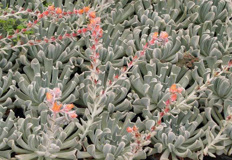 • Color: The leaves are typically a soft, powdery blue-green, which can deepen in color with increased sun exposure. This subtle hue contrasts beautifully with the vibrant orange-yellow flowers that the plant produces during its blooming season, making it a standout piece in any succulent collection.