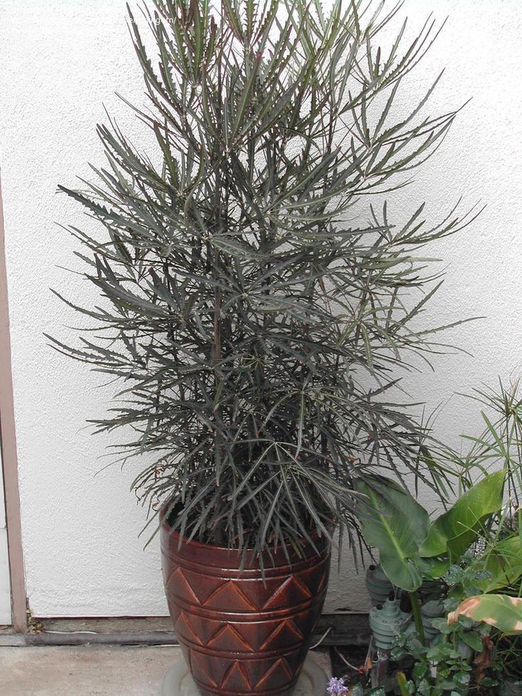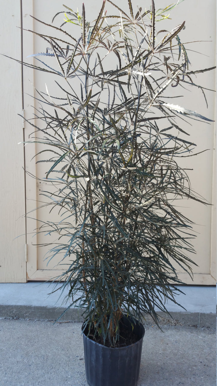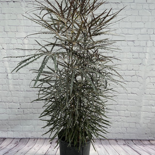 - False aralia (Dizygotheca elegantissima), also known as spider aralia or threadleaf aralia, is grown for its attractive foliage. The long, narrow, dark green leaves with saw-tooth edges are coppery colored at first, but as they mature they turn dark green, appearing almost black on some plants.