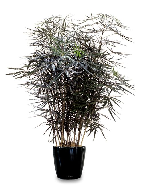 - Schefflera elegantissima have beautifully textured foliage, with deeply serrated leaflets and dimpled petioles and stems. The juvenile plants tend to have more textured foliage, while the adult leaves are more deeply lobed. As far as their performance goes, they are tolerably easy to grow. They need at least moderate humidity to do their best and prefer a narrow range of moisture. Plants that are too dry tend to drop leaves.
