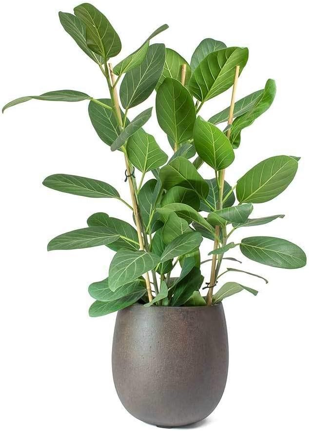 Ficus Benghalensis is a highly sought after ‘it’ plant right now and it’s easy to see why: its striking appearance combined with its easy care requirements makes for effortless ownership. Those deep green velvet leaves really make it a conversation piece and will look great in your living space. The Ficus benghalensis ‘Audrey’ is a banyan tree native to India and the surrounding region. It’s a type of Strangler Fig. Common names include Ficus Audrey, Bengal Fig, Strangler Fig and Banyan tree The open tree structure features emerald-green, oval leaves with prominent veins and a velvety texture. The leaves measure about three inches wide on mature specimens. Another highlight is its sturdy, light-colored trunk that thickens with age. The Ficus Audrey is more forgiving than the Fiddle-Leaf Fig – but that doesn’t necessarily say much. It shares the frustrating family habit of easily shedding leaves. Even if it’s not a beginner’s tree, however, Ficus Audrey can adjust to a range of light and humidity. Ficus Audrey bears a striking resemblance to the rubber plant, but it swaps out the glossy, moody, burgundy leaves for some that are small, matte, and emerald green; and the leggy and dark trunk for one that’s thick and white, almost birch-like.