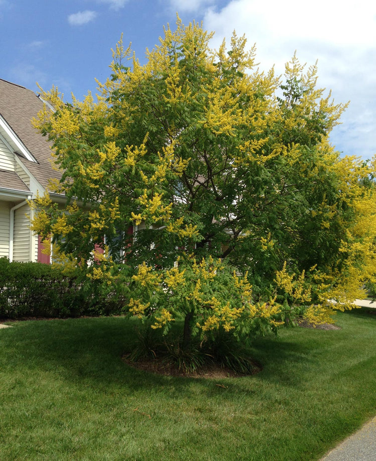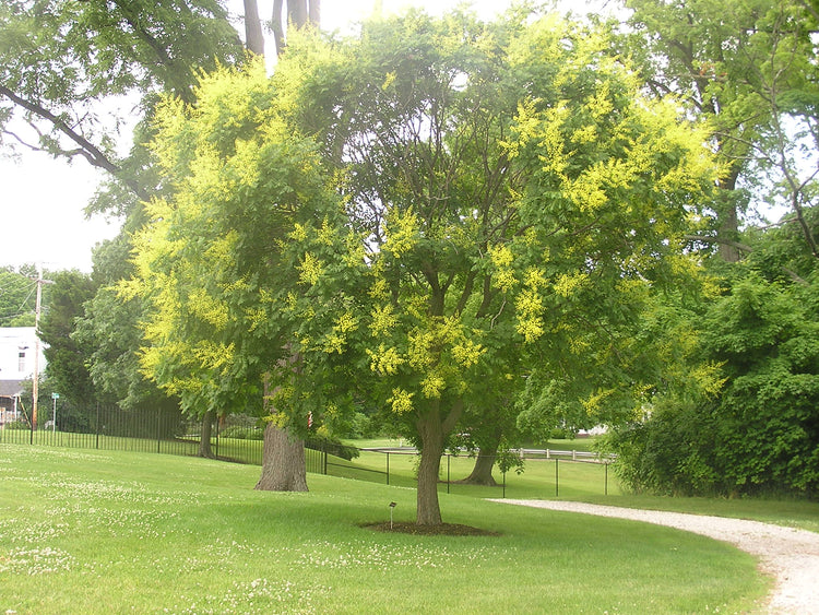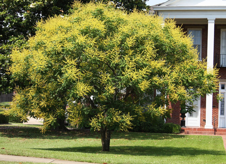 - Grown, packaged and shipped exclusively by Wekiva Foliage. Excellent shade tree, known for its neat habit and well-behaved root system. Medium-sized, open-branched form is ideal for parkways and patios. Blue-green foliage has nice fall color. Long panicles of fragrant flowers are followed by attractive, papery, lantern-like seed pods. A very effective and versatile landscape specimen. Deciduous.