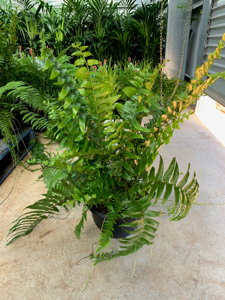 - A tropical, evergreen fern, it's also called "giant sword fern" because its sword-shaped fronds can be 4 feet long, with the entire plant approaching a width of 6 feet.