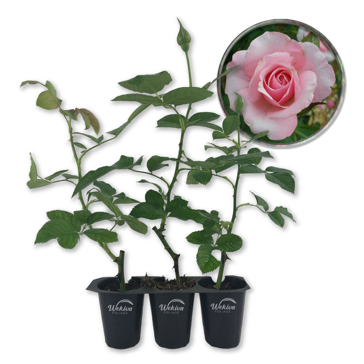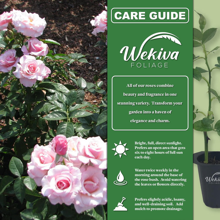 The Our Lady of Guadalupe Rose Bush is a breathtaking addition to any garden, offering an abundance of soft pink blooms with delicate ruffled petals. This floribunda rose is celebrated for its continuous flowering habit, ensuring a near-constant display of color from late spring through fall. The blooms emit a light, pleasant fragrance, adding an extra layer of charm to this already striking plant. Lush, deep green foliage provides a stunning contrast to the pastel blossoms, making this rose a standout in flower beds, borders, or container gardens. This compact yet vigorous rose bush reaches a mature height of approximately 3 to 4 feet, with a rounded, well-branched growth habit that fits beautifully into both formal and casual landscapes. It thrives in a variety of climates, demonstrating excellent heat tolerance and resilience, making it a rewarding choice for gardeners of all experience levels. Whether planted as a focal point or combined with other perennials and shrubs, the Our Lady of Guadalupe Rose Bush brings grace, beauty, and a sense of tranquility to any outdoor space.
