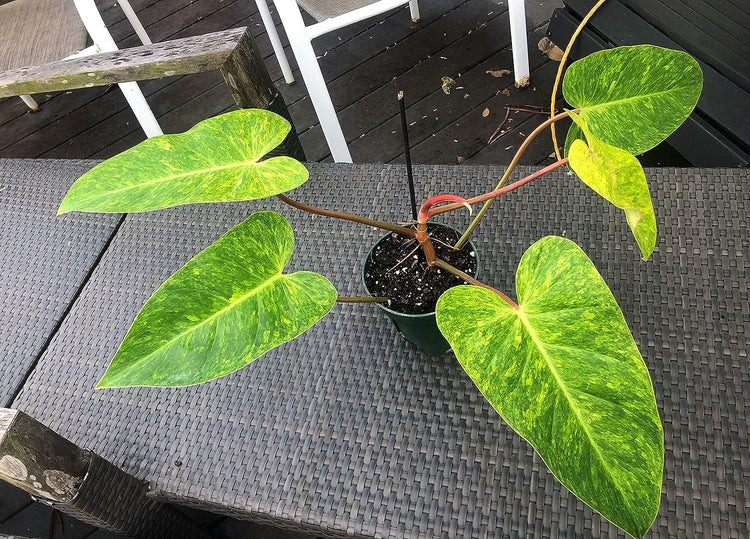 Light: Philodendrons prefer bright indirect sunlight but can grow in lower light conditions. If your home doesn't have enough natural light, use LED grow lights for 8-10 hours a day as a supplement. New leaves may be smaller and colors may fade in low light conditions. Water: Water thoroughly after soil is almost dry, more often in the growing season and less frequently in winter. Test soil for dryness by picking up the plant. Water more often in warm or hot conditions. Temperature: Philodendrons love warm temperatures of 65-85°F and benefits from air circulation. Keep away from cold drafts and hot temperatures over 90°F. Humidity: Philodendrons can handle most household humidity levels but grow more rapidly with humidity above 60%. Increase humidity with pebble trays, grouping plants, or a cool mist humidifier. Fertilizer: Philodendrons benefit from regular fertilizing and should be fertilized with a weak solution of complete liquid fertilizer every two weeks during growing season. Do not fertilize during winter unless the plant is still growing.