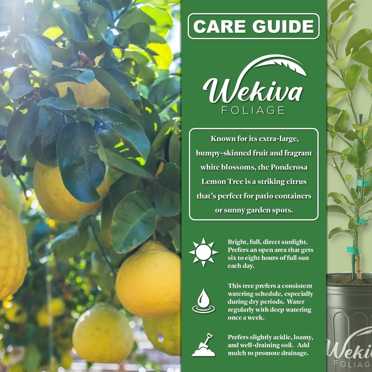 - Sunlight Requirements: The Ponderosa Lemon Tree performs best in full sun, requiring at least 6 to 8 hours of direct sunlight each day. Indoor growers should place it near a south-facing window or supplement with a grow light.