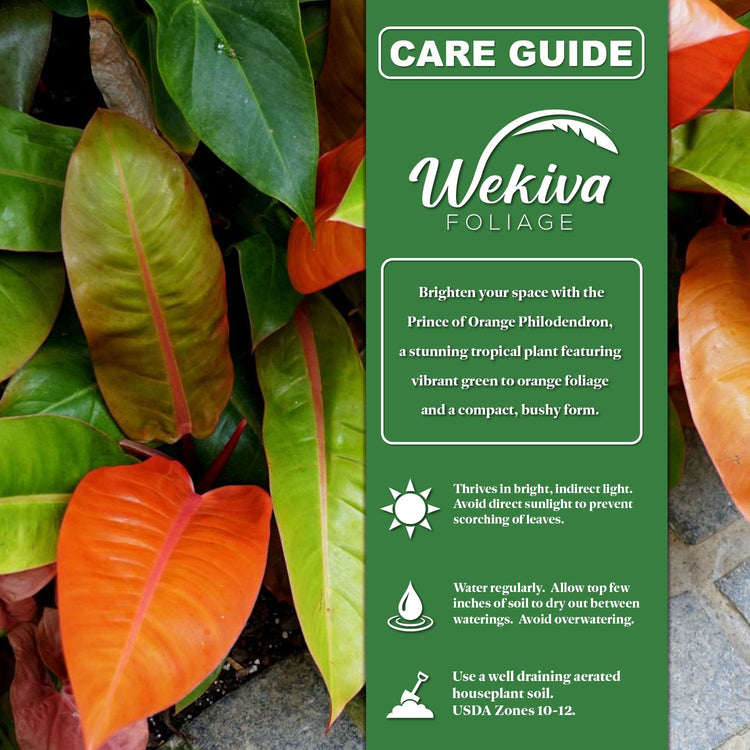 - Physical Characteristics: The standout feature of the Prince of Orange is its striking leaves. New foliage emerges in shades of orange or copper, which gradually fade into a deep green as they mature. The glossy, heart-shaped leaves create a stunning visual contrast that is perfect for adding a pop of color to your home.