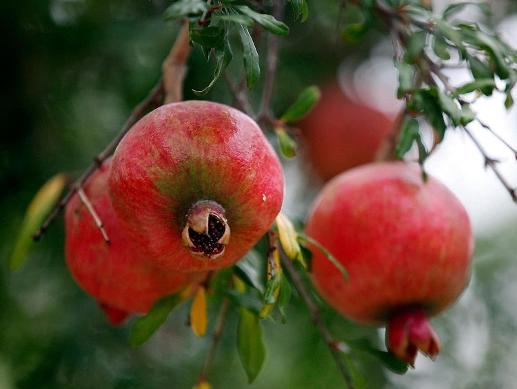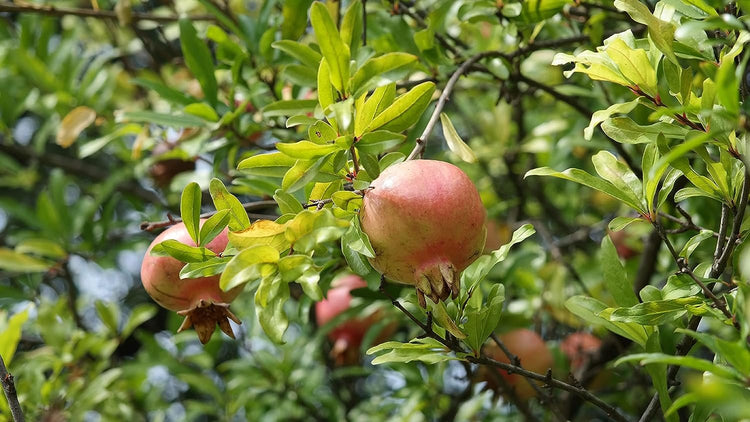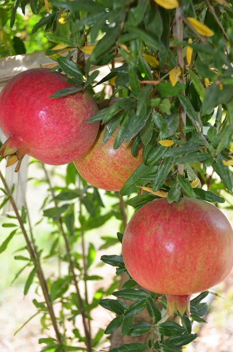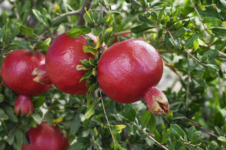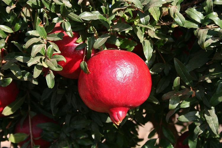 Once considered a fruit for royalty, the pomegranate is a delicious addition to your backyard orchard or edible landscaping. Its beautiful, showy, red-orange flowers become decorative fruit in the fall. Best known for the antioxidant-rich fruit it produces, the pomegranate shrub is widely grown throughout the Mediterranean region. Its tubular blooms begin to appear in late May and early June, providing nice spring color, while the fruit ripens from September to October. The fruit is a bit unusual, as the only edible parts are the jewel-like arils and seeds found inside. The pomegranate fruit is a leathery skinned red sphere known as an aril. The thick aril contains several hundred juicy red edible fruits that are similar to berries. They are known for their antioxidant properties and many associated health benefits. The pomegranate tree will adapt to either acidic or alkaline soil, though it prefers something in the range of 5 to 7 pH. Add plenty of organic well-rotted compost to your soil, as this will both improve drainage and also improve the quality of the soil, providing much-needed nutrients to the pomegranate tree. The pomegranate tree is drougt tolerant and can be grown in a dry area and in areas where there is good rainfail. It is best not to plant in wet areas as they are prone to root decay for fungal diseases. They also tolerate dipping temperatuares down to about 10 degrees but should be planted in an area of protection from direct winter winds.