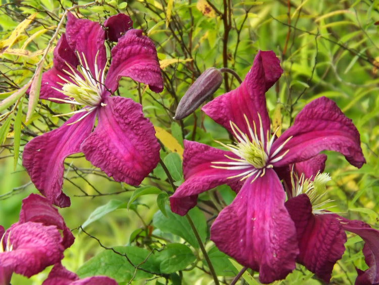 - 'Madame Julia Correvon' is a deciduous, small-flowering, climbing clematis vine (Viticella group) which typically grows 8-12' and features bright red flowers (2-3" diameter) with yellow stamens. Profuse summer bloom (June-September). Pinnately trifoliolate medium green foliage.