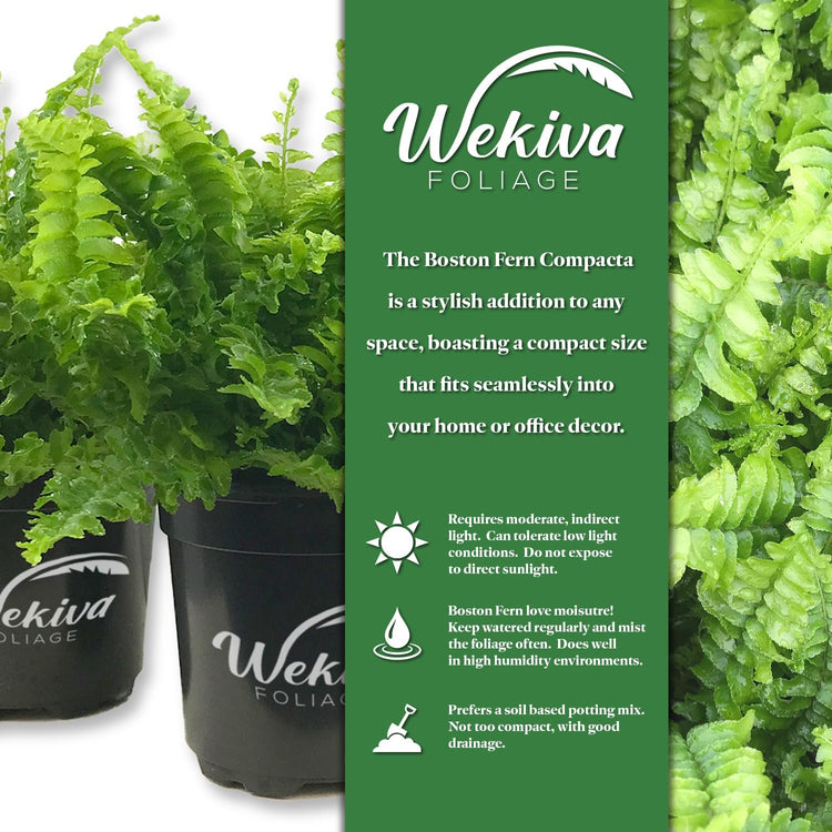 - Compact and Elegant: The Boston Fern Compacta is a stylish addition to any space, boasting a compact size that fits seamlessly into your home or office decor.
