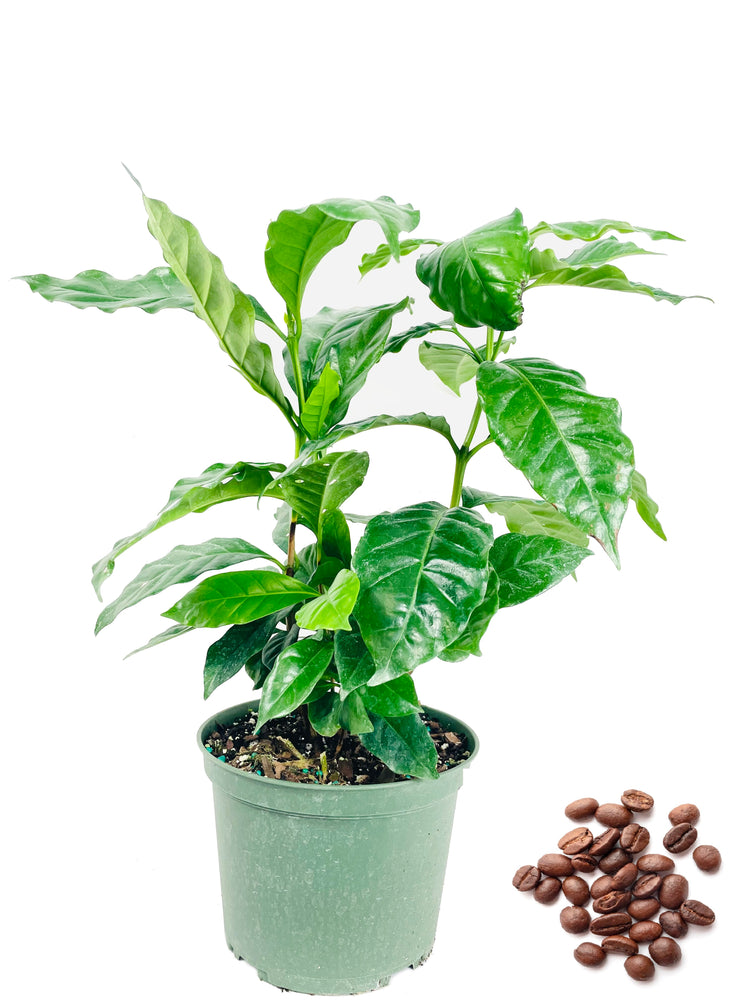 • Grown, packaged and shipped exclusively by Wekiva Foliage. Coffee beans grow on an attractive little plant with glossy green leaves and a compact growth habit. In their native habitat, they like to grow into medium-sized trees, but the plants are regularly pruned to a more manageable size by coffee plantation growers.
