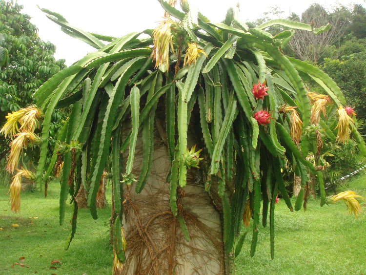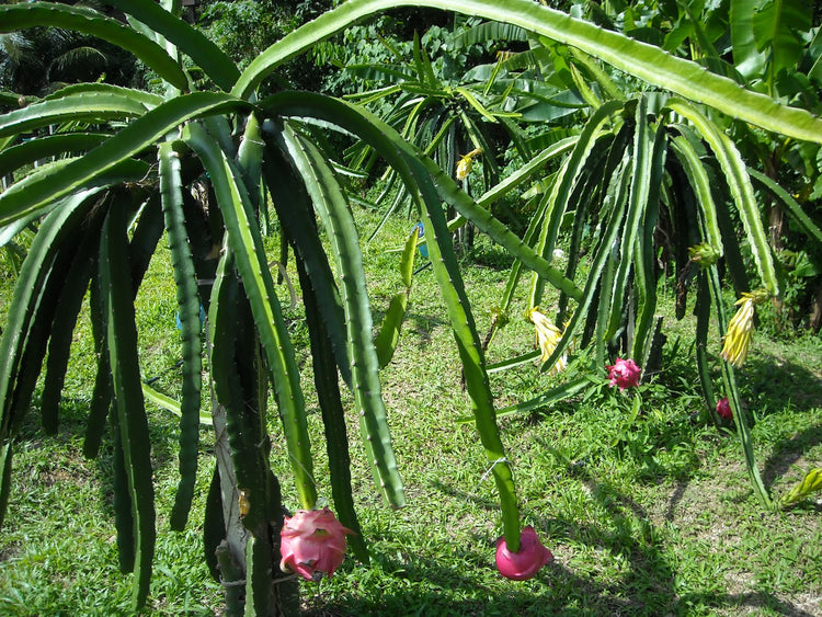 - In the right conditions dragon fruit plants grow can grow to be quite tall and will put down aerial roots as they grow so make sure your pot is at least 40cm in diameter. Also, remember that dragon fruit plants are climbers so give them a stake or something else to climb on.