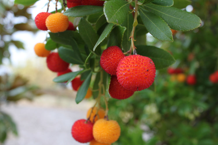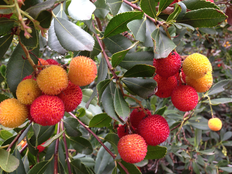 - Grown, packaged and shipped exclusively by Wekiva Foliage. In addition to a strawberry tree, Arbutus unedo is also called Killarney strawberry tree, Irish strawberry tree, cane apples, Dalmation strawberry, or simply arbutus. On the coat of arms for the city of Madrid, Spain, a bear is reaching up to grab fruit from a strawberry tree.