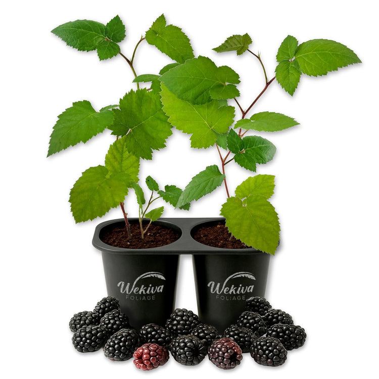 The Blackberry Plant (Rubus) is a vigorous, fruit-bearing shrub prized for its lush green foliage, trailing or upright canes, and the abundant clusters of juicy, dark berries it produces each season. Known for its resilience and adaptability, this plant is an excellent addition to any garden or edible landscape, offering not only ornamental beauty but also reliable harvests. Blackberry plants develop arching or erect canes that can be trained onto a trellis or allowed to grow freely, forming a natural hedge. The striking contrast between the vibrant green leaves, delicate white blooms, and ripening berries creates a visually appealing display that changes throughout the growing season. With proper care, the plant produces generous yields, making it an ideal choice for gardeners who enjoy cultivating fruit at home. Beyond its ornamental appeal, the Blackberry Plant is valued for its long productive lifespan and ability to thrive in a range of conditions. Once established, it becomes a hardy, low-maintenance shrub that rewards growers year after year. The plant’s growth habit allows it to provide both fruit and seasonal visual interest, and it can be incorporated into garden beds, along fences, or as part of a larger edible landscape. Whether planted individually or in multiples, blackberry plants add lasting charm and productivity to outdoor spaces, ensuring that each season brings fresh opportunities to enjoy their glossy foliage, blossoms, and rich, flavorful berries.