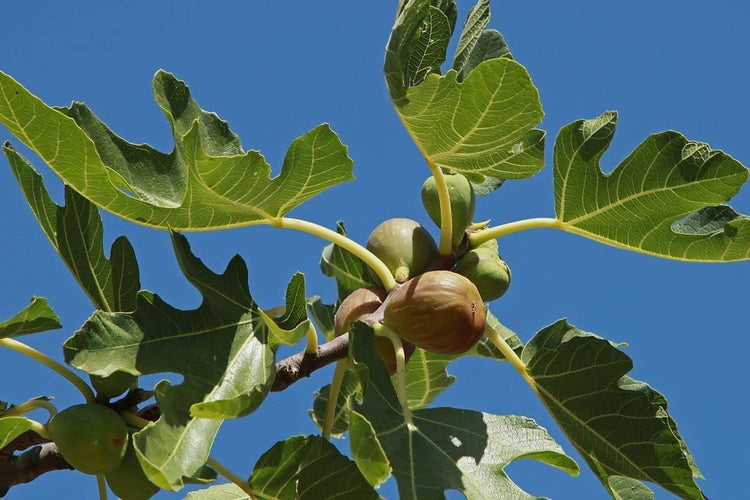 These iconic plants produce delicious fruit with flavors best experienced ripe from the tree. Unlike other fruits, figs ripen entirely on the branch, so planting your own allows you to harvest the freshest fruit. The common fig tree, thriving in warm climates, does not require pollination to bear new fruit. Figs are self-fruitful, so you need only one plant to produce fruit. Mature fig trees can be 10 to 30 feet tall. If you have more room, plant several. Choose early, mid and late-fruiting selections to extend your harvest from summer into early fall. Some figs will produce bonus fruit early in the season, called a "breba" crop and the main crop. Figs can vary in size, shape, flavor, texture, and harvest time and can be black, green, brown, violet, yellow, or purple. Full sun is essential for an abundant harvest and the sweetest fruit. It's ideal for planting fig trees in an area that receives six to eight hours of direct, daily sunlight. Less sunlight will prevent trees from producing as many figs compared to those planted with adequate light. Fig trees grow in various soil conditions, but slightly acidic and well-drained soils are best. Soil with rich, organic matter helps supplement growth. Regular potting mixes work well for fig trees as long as it retains moisture and is well-aerated. These plants grow well near coastal regions but also tolerate loamy, clay, or sandy conditions. When fruit is developing, it's important to water regularly. Check daily, and pick just as the fruit ripens. During the first year, as plants become established, water regularly and mulch. Once established, figs can be very drought tolerant.