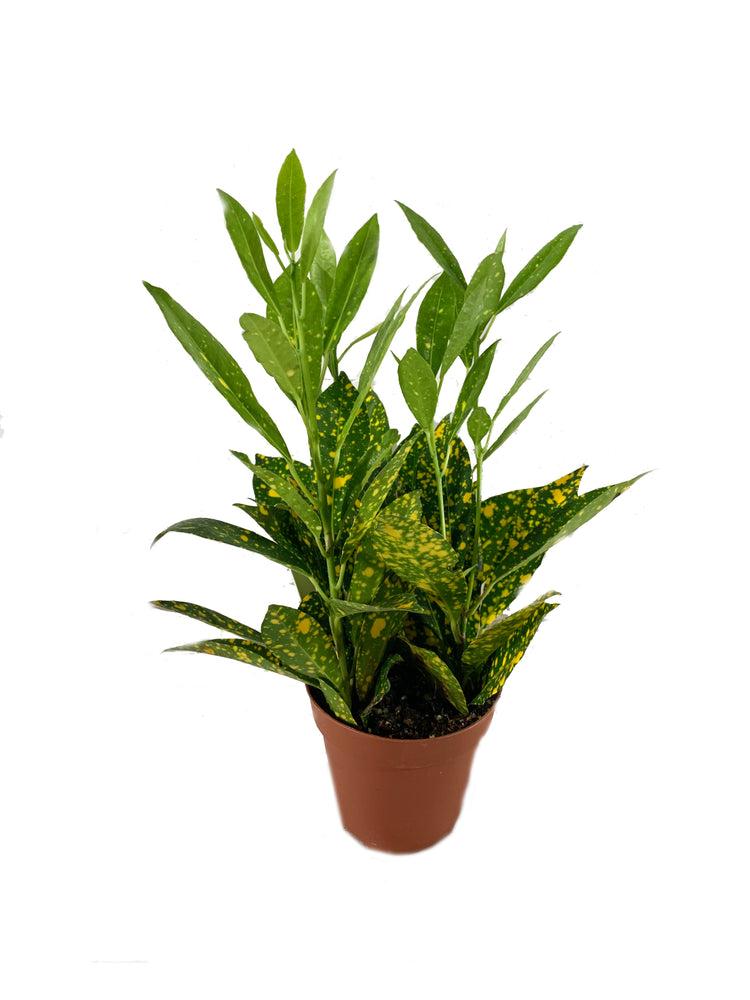 - You can’t miss this plant, as it has some of the boldest and brightest foliage around. Speckled with golden spots, Crotons add a tropical touch to your home. These exotic plants have a reputation for being high-maintenance due to their tropical nature, but once established they are relatively low maintenance.