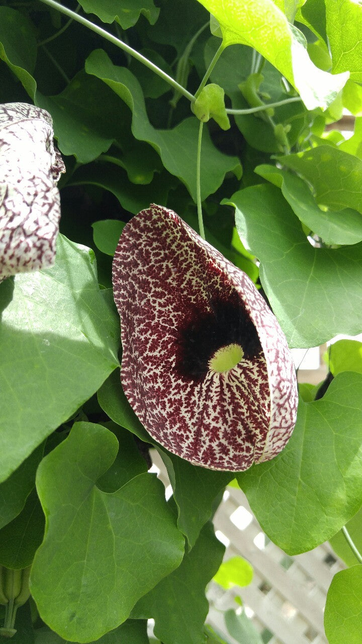 - Vines primarily bloom in summer and fall, but in warm climates are free flowering. Flowers are pollinated by flies. This vine is synonymous with and formerly known as Aristolochia elegans.