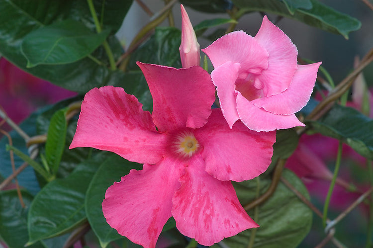 • Grown, packaged and shipped exclusively by Wekiva Foliage. Dipladenia and Mandevilla are tropical plants with beautiful showy flowers. The blooms can be red, pink, or white, depending on the variety, and will be trumpet-shaped, reminiscent of a hibiscus.