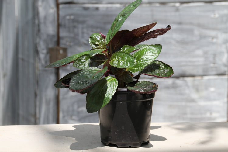 - Grown, packaged and shipped exclusively by Wekiva Foliage. The purple waffle plant, also known as red ivy, is a tropical perennial with a prostrate, spreading growth habit and beautiful oval leaves with gray-green tops and purple bottom surfaces. The tiny white flowers that appear in summer are attractive but secondary to the beautiful foliage.