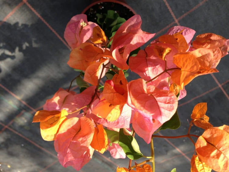 • Bougainvillea Plants offer a strong vining habit with showy flowers that change from pale gold to orangey-bronze as they emerge and then mature. It is a flowering machine that puts out a big explosion of color, drop its bracts, flowers again, and repeats this all season long.