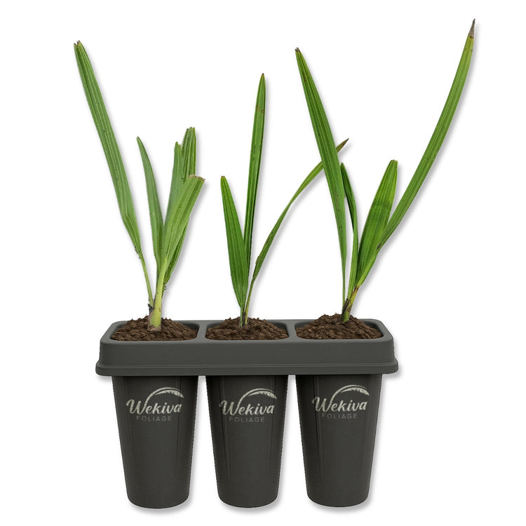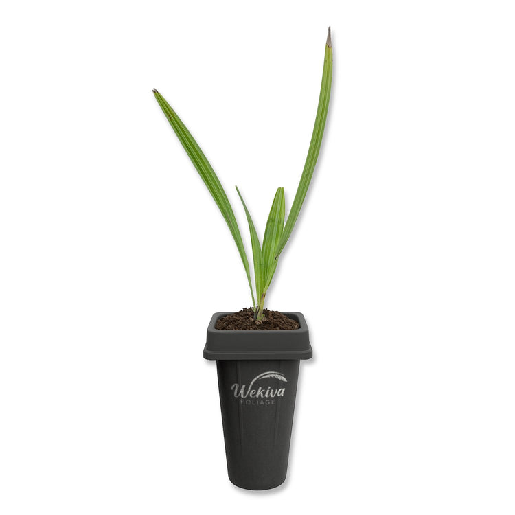 The Green Saw Palmetto (Serenoa repens) is a striking native palm known for its fan-shaped fronds, robust structure, and ability to thrive in a range of landscapes. This slow-growing, clumping palm typically reaches 5 to 10 feet in height and can spread wide with multiple trunks emerging from its base. Its broad, green, fan-like leaves are deeply divided and edged with small, sharp teeth that give the plant its name. The plant’s strong architectural form makes it ideal for naturalistic gardens, coastal landscapes, or wildlife areas, adding texture and movement wherever it’s planted.