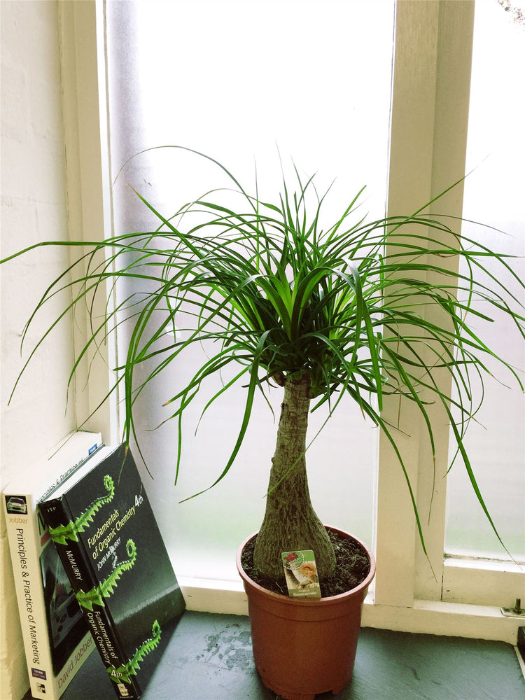 - The common characteristics of this plant include a bulbous trunk, which is used to store water, and its long, hair-like leaves that grow from the top of the trunk like a ponytail, giving the plant its renowned name.