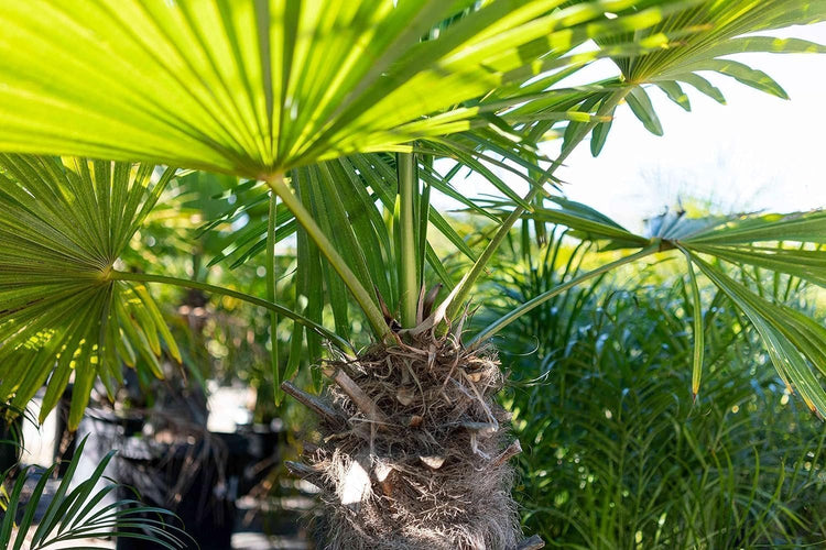 - An extremely hardy evergreen palm tree with an attractive, compact crown with large, stiff, fan-like, green foliage and distinctive hairy black fibers covering its slender, graceful trunk. A striking specimen that is excellent for making a tropical statement in smaller landscapes and rock gardens. Works well in group plantings and containers.