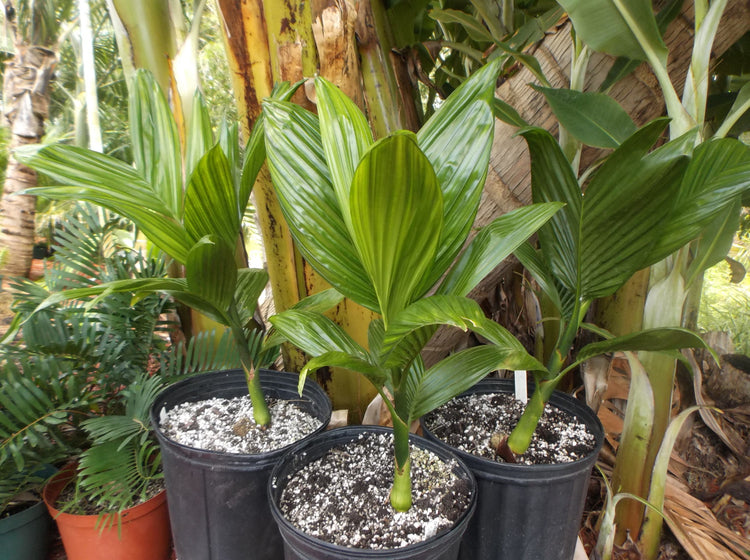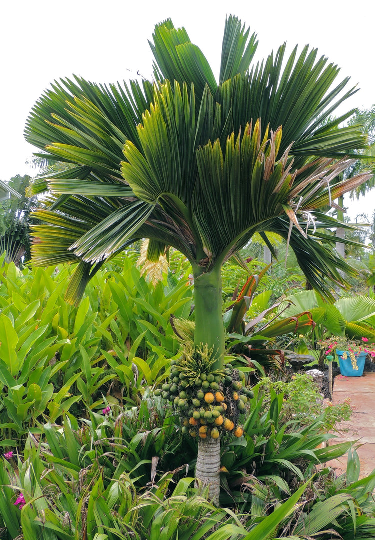- The origin of this species is uncertain but it is assumed to be from Malaysian rainforest areas. Being monoecious, this palm can produce viable seeds from a single plant.